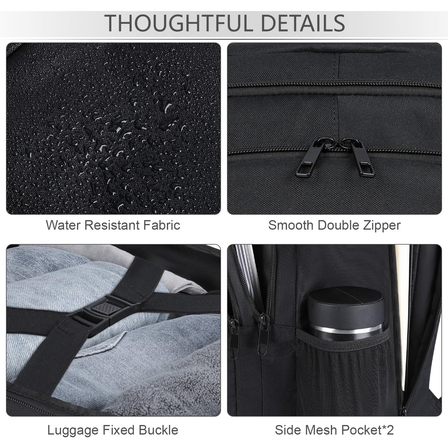 Travel Backpack, Carry on Backpack Large Capacity & Multi Pockets: The travel backpack roomy space can fit in 2-4 days short trip of daily essentials. The separate laptop compartment can hold 15.6 inch laptop, suitable for college and office work; and the interior main pocket, book compartment, side pockets, anti-theft pocket and front accessory pockets etc 10 pockets make your items organised and easy to find TSA Approved Carry on Backpack: The carry on backpack measures 17.3*12.6*7.9 inches and weighs 1.3 lbs, complies with airline carry-on baggage requirements, can be used as a personal item travel bag fits overhead bin or under the seat. Unique 180-degree opening design allows you to easily pack and access your luggage. TSA approved design makes it easier to get through airport security without removing your laptop from your backpack Ergonomic Laptop Backpack: The back design of the shcool backpack uses multi-panel airflow design for breathable, thickened sponge pads can maximise back comfort. Adjustable shoulder straps allow the backpack to fit perfectly on your back, the widened shoulder straps greatly relieve pressure when your child goes to school. Humanised design laptop backpack worthy of your choice and trust High Quality & Guaranteed: The backpack for men is made of high grade water-resistant fabric, tear resistant and lightweight. Its quality is guaranteed by premium zip, comfortable handle and high-strength stitching. With quality service, our backpack comes with a lifetime warranty and customer service team is here for you 24/7 if you have any questions or need help with our laptop backpack Versatile Usage: The laptop bag is the perfect choice for carrying all your school, work, trip, camp and travel essentials. Use it as a personal item bag, school backpack, college backpack, work backpack and book bag. As a birthday, anniversary, Christmas, back to school gift for your friends and family. age: over 12 years old