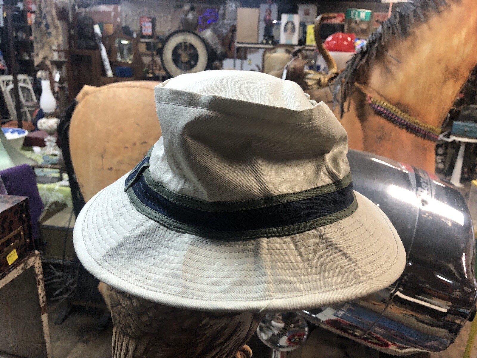 This is a men's XL cream-colored bucket hat made from 100% cotton. The hat is new and suitable for casual occasions. With a classic bucket hat style, this accessory is perfect for adding a trendy touch to any outfit. Made from cotton, it offers comfort and breathability for all-day wear. Perfect for sunny days or adding a stylish flair to any casual ensemble, this ivory bucket hat is a versatile and fashionable choice for men. I have
