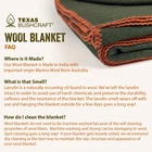 WHAT'S THAT SMELL? Lanolin is a naturally occurring oil found in wool. We’ve left the lanolin intact in order to avoid use of harsh chemicals and preserve the durability, softness and fire resistance of the blanket. The lanolin smell wears off with use and hanging the blanket outside for a few days goes a long way! STAY COZY WARM under the comfort of this cold weather camping blanket by . Its thermo-regulating properties and water resistance make it the best wool blanket for fending-off frigid temperatures. Hunker-down comfortably in your tent or car to await the break of day. VERSATILE INSULATING BLANKET keeps you toasty in an array of outdoor settings. An integral part of your bushcraft gear, this warm blanket can also be used as a stadium blanket for sporting events or as a campfire blanket. Gather around a roaring fire with it draped over your lap or shoulders. DOUBLE-STITCHED EDGING around all borders gives the Camping Blanket for cold weather exceptional durability. Because it repels moisture through its fibers for water resistance and fast drying, this cold weather blanket is odor-resistant and naturally self-cleaning. LARGE 66” X 90” SIZE insulating blanket is suitable for children, women and brawny men. Use it inside your sleeping bag, atop a camp cot or fashioned into a hammock. It folds down or rolls into a compact size for a portable backpacking blanket or emergency blanket for car or motorcycle.