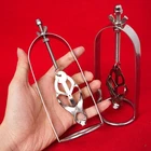 Discrete Package D escription: This protraction device is designed to clamp down on and then gradually stretch out the nipple. Comprised of a stainless steel frame supporting a dangling clover clamp, it is designed to grip tighter the further the nipple is stretched. Just affix the clamp just behind the nipple, and twist on the wing nut. As the clamp is pulled upwards, the grip is increased, stretching the nipple out. This unique piece can be used by both men and women, and is sure to guarantee the most intense nipple sensation. Measurements: Frame measures 2.10 inches in diameter, 6.5 inches in length; extractor extends to a top length of 2.5 inches Material: Stainless steel Color: sliver Note: Includes one pair devices Will Be Ship ped In A Discrete Package
