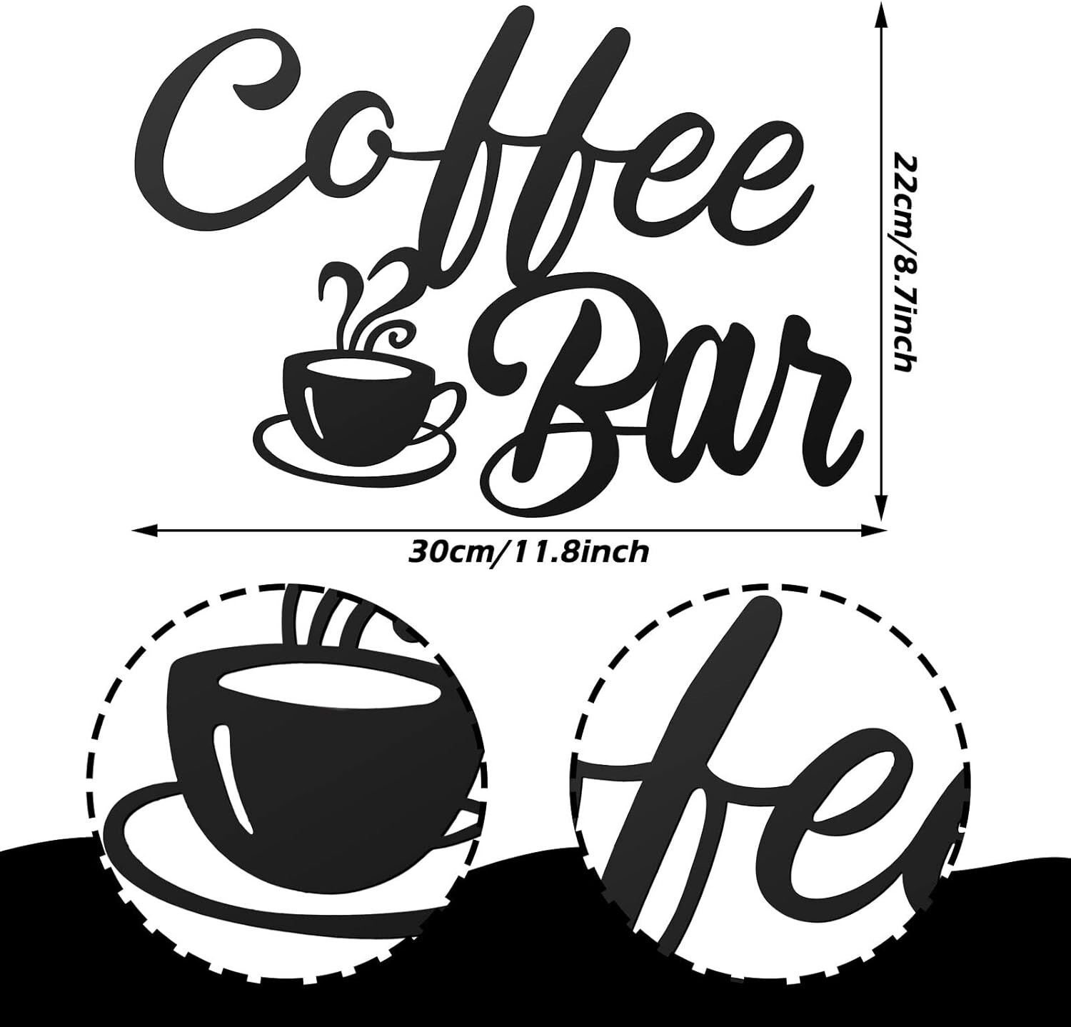 Metal Coffee Bar Sign Wall Art Decor for Kitchen Living Room Home Office New Color: Black Material: Metal Theme: Wedding Recommended Uses For Product: Coffee bar, cafe, kitchen decor, gift Exquisite workmanship: the coffee wall decor is made of quality metal material with black finish, wear and tear resistant, not fade and break; The simple and creative metal coffee wall art features beautiful coffee time font with a coffee cup, delicate and eye catching Cafe wall decoration: the black coffee supply is designed with cute letters, combined with the coffee cup pattern, which looks very interesting and novel, providing your home with a lovely decoration that brings different visual effects Simple to operate: you can use nails or rope to install the coffee letter wall decors wherever you want to hang up conveniently, which will not spend you too much effort and time, after installation, your home will be added a charming scenery line Suitable dimension: the coffee hanging wall sign measures approx. 30 cm/ 12 inch in length, proper to coordinate with your house other decorations, light in weight, convenient to install without worrying about its falling off Exquisite and heartwarming gift: the metal coffee wall sign is a lovely housewarming gift for friends and family members on Christmas, Thanksgiving, wedding, baby shower, birthday party, New Year's Day and other outdoor or indoor parties Return Policy: We offer a 30 day return policy from the receiving date. Please contact us for a Free Return Label. Please use our return label so it will go back to our supplier and we can do a refund or replacement afterwards. Feedback: Your satisfaction is very important to us! If you have any problem with your order, please contact us and we will do our very best to make you satisfied. As long as you are happy with your purchase, please leave a positive feedback for us. We will always leave you a positive feedback in return. If you have any problem with your purchase, please do not leave a negative feedback. Please Contact us ... and your issue will be solved quickly and positively We are a small family-owned business trying to make a living, not a huge company that does not care ... We will ALWAYS do our best for you!
