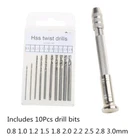 Features: Ergonomic Design: Pen size design, easily adjustable vise for head to clamp the drill, Precise designed chuck to keep that drill upright easy to carry and store. Precise and Durable: Mini Hand Drill and 10 pcs twist drill are made of high speed steel hand drill to make sure the Pin Vice Drill is ready for any hobby or job, the ribbed handle gives you the right leverage when you turn the vise, giving you speed and handle your designs. Adjustable: It can hold slim drill bits firmly. This hand drill has an adjustable drill holder that matches the different drill sizes you use. Pin Vise: A hand manual drill has many different uses given the nature of this tool. Most common use is for drilling. Wide Application:Compact size, light, perfect for plastic, walnut, amber, bead, beeswax, nut, small model kit and many other DIY projects that require the drilling of precise holes. Specifications: Material: Alloy Size:0.8/1.0/1.2/1.5/1.8/2.0/2.2/2.5/2.8/3.0mm Package Includes: 10 X Drill Bits 1 X Handle note: Please allow 1-2cm errors due to manual measurement,pls make sure that you do not mind before you order. Due to the difference between different monitors, the picture may not reflect the actual color of the item.