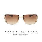Product information: Lens color: brown Mirror frame color: Gold Transmittance classification: Class 2/Sunshade mirror Glasses structure: frameless Popular element: glasses Color: Gold frame gradient tea, Gold frame gradient gray, Silver frame white mercury, Gold frame black gray flakes Style: Business, Versatile, Elegant, Minimalist, Casual, Sporty, Fashionable OL, Minimalist, European and American, Light Luxury, Chic, High End Lens material: AC Frame Material: Metal Glasses Style: Box Style Category: Fashion Commuter Mirror frame material: plastic+metal Popular element classification: Shape/Pattern Packing list: Sun Glasses*1 Product Image: