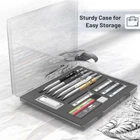 Mr. Pen metal mechanical pencil set includes 5 quality pencils in 5 sizes: 0.3, 0.5, 0.7, 0.9, and 2.0 mm; a set of 5 HB lead refills of each size, 1 tube of 2.0mm colored lead refills, and 10 eraser refills. Each pencil has a comfortable grip for hours of writing comfort! The mechanical pencil is made of high-quality material. The body provides ideal weight balance for fatigue-free writing and drawing. Our mechanical pencil set is ideal for school or office use! The set comes packaged in a reusable box with an easy-to-close lid to keep the pencils organized and protected from damage when not in use! Mr. Pen mechanical pencils set is perfect for everyday use. They are also great for art and technical drawing. The lead is very durable and will not break easily, making them a great choice for artists and professionals. This mechanical pencil set by Mr. Pen is perfect for anyone, from architects and artists to students, teachers, and engineers. With 5 different pencil tip sizes, it's the ideal tool for any project. Product Description 1 Features 2 Variety Of Lead Sizes 3 Easy Storage Are all the different-sized leads black? All the pencils have black lead, but the 2 mm pencil has both black and colored lead refills. Are the erasers latex-free? Yes Mr. Pen Mechanical Pencil Set Add to Cart Add to Cart Add to Cart Add to Cart Add to Cart Add to Cart Add to Cart Customer Reviews 4.6 out of 5 stars 404 4.6 out of 5 stars 7,846 4.6 out of 5 stars 7,846 4.6 out of 5 stars 7,846 4.7 out of 5 stars 345 4.5 out of 5 stars 361 4.6 out of 5 stars 5,951 Price $14.99 $ 14 . 99 $7.99 $ 7 . 99 $7.85 $ 7 . 85 $7.85 $ 7 . 85 $6.99 $ 6 . 99 $5.99 $ 5 . 99 $9.99 $ 9 . 99 Body Material Metal Plastic Plastic Plastic Plastic Plastic Metal Lead Size 0.3, 0.5, 0.7, 0.9, and 2.0 mm 0.3, 0.5, 0.7, 0.9, and 2.0 mm 0.3, 0.5, 0.7, 0.9, and 2.0 mm 0.3, 0.5, 0.7, 0.9, and 2.0 mm 0.5 and 0.7mm 0.7 mm 0.3, 0.5, 0.7, 0.9, and 2.0 mm Eraser Refills 10 Pcs 10 Pcs 10 Pcs 10 Pcs 8 Pcs 8 Pcs 10 Pcs Lead Refills 6 Tubes 5 Tubes 5 Tubes 5 Tubes 6 Tubes 4 Tubes 6 Tubes Body Color Silver Vintage Colors Pastel Colors Bright Colors Boho Colors Cute Mild Colors Silver Comes in a Storage Case ✔ ✔ ✔ ✔ ✔ ✔ ✔