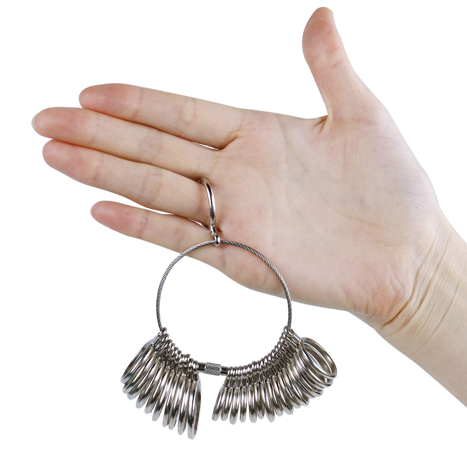 Ring Mandrel Metal Ring Sizer Set with Jewelry Rubber Mallet Hammer Rings Size Measuring Tools Finger Gauge Wood Ring Shaper Tool Jeweler's Repair Kit Metal Ring Mandrel - Made of aluminium material, marked with US Size standard, grooved size marked ring mandrel, fine workmanship With round outside and flat inside, smooth edges do not hurt your hands. Metal ring sizer set - Made of steel, US size 0-13, come in half sizes.The ring sizes are clearly marked, easy to use and accurate to the size. Great for someone get into jewelry-making as hobby and on-line shopper for ring size determining. Wood Mandrel - Used for ring repair, shaper, polishing and sanding, high quality jewelry making tools. (Note: There are no sizes marked on the wood mandrel) Jewelry Rubber Mallet - Working with rubber hammer to fix or regulate rings,rubber head would not leave traces on the jewelry or damage your jewelry.Provide perfect strike without scratching or damaging the surface of materials. Ring shaper repair tools kit essential for professional and beginners, designed for ring size measurement, work great for the ring forming, shaper perfectly. Good for fix bent rings, making the bent ring round again. Designed for wire working,craft wire, wire wrapping and wire jewelry, easy to use.