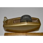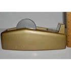 This metal tape dispenser is a Scotch Heavy Duty model C-23, nice heavy vintage desk item that is gold with felt on the base and original manufacturer sticker inside. It holds a 1" roll of tape. This is approx 9.75" long. In vintage condition with nicks and character, but should still work for dispensing tape. Free shipping is included.