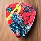 This Metallica M72 World Tour Red Full Speed or Nothing James Hetfield Guitar Pick is a must-have for any true fan of the band. This original piece of music memorabilia features the iconic Metallica logo and is perfect for collectors or as a gift for a fellow fan. With its bright red color and unique design, this guitar pick is a great addition to any collection of rock and metal music memorabilia. Whether you are a long-time fan or just discovering Metallica, this piece is sure to impress. Don't miss out on the opportunity to own a piece of concert history.