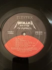 This is a Metallica "Master Of Puppets" LP vinyl record, a first pressing from 1986 on Elektra Records. The record is a 33 RPM in a cardboard sleeve, with a black vinyl featuring a Thrash & Speed style, fitting into the Metal genre. It was manufactured in the United States and is part of the band's iconic discography. This particular release is known for its dynamic range due to being a Sterling DMM (Direct Metal Mastering) press, making it a sought-after collector's item for Metallica fans and vinyl enthusiasts. Item in pictures is what you will receive, examine pictures closely to determine overall condition. - minor damage on cover opening - see picture - bottom of inner sleeve has small tear - see picture - kept in plastic sleeve