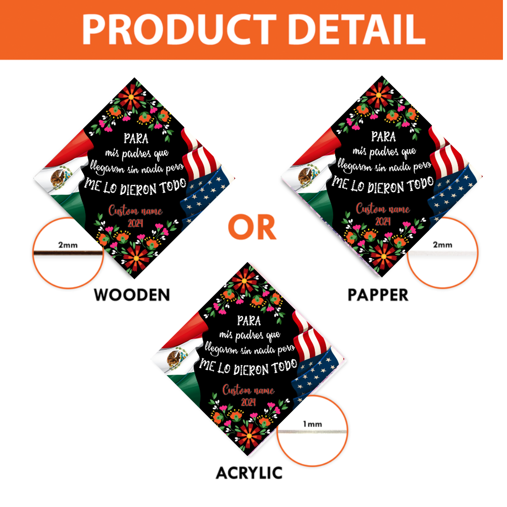 Celebrate Your Culture and Achievement with a Customized Mexico Graduation Cap Topper 2025 Make your graduation day unforgettable with our Mexico-themed Graduation Cap Topper – a beautiful and meaningful way to showcase your pride, personality, and journey. Designed especially for Latina grads , this custom topper adds a personal and cultural touch to your special moment. 🎓 High-Quality Materials Choose from durable acrylic (1mm) , premium wood (2mm) , or thick paper , ensuring your topper stays vibrant and sturdy throughout the ceremony. 🌟 Personalized Design Each topper is fully customizable and may feature glitter, rhinestones, metallic accents , and more. Add your favorite quotes, school logos, career icons , or even Mexican-inspired themes to represent your story, goals, and identity. 🌺 Stand Out with Pride Perfect for Latina graduates and anyone proud of their Mexican heritage , this cap decoration makes you shine during commencement and stand out from the crowd in a bold, festive way. 🎁 Meaningful Keepsake More than just decoration, this topper becomes a lasting memento of your hard work and success—a gift to yourself or a thoughtful present for the graduate in your life.