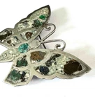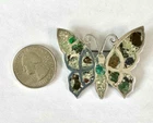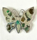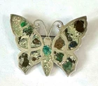 Unusual Mexico sterling silver butterfly pin brooch. I assume the crushed stone used to fill the wings and body are gemstone. The color is very drab. Perhaps the artist was trying to copy a butterfly native to Mexico that lacks bright color or even a moth. The close-up photo shows the only spot we found where the top of a stone chip may have been broken off, visible in reflected light. The brooch measures about 1-7/8" wide by 1-1/2" tall. Click on any photo to 'super size' them. We'll be happy to answer any questions. We will wrap securely and mail it in a shipping box. Mexico Sterling Silver & Crushed Gemstone Wings & Body Butterfly Pin Brooch Mexico Sterling Silver & Crushed Gemstone Wings & Body Butterfly Pin Brooch Click images to enlarge Description Unusual Mexico sterling silver butterfly pin brooch. I assume the crushed stone used to fill the wings and body are gemstone. The color is very drab. Perhaps the artist was trying to copy a butterfly native to Mexico that lacks bright color or even a moth. The close-up photo shows the only spot we found where the top of a stone chip may have been broken off, visible in reflected light. The brooch measures about 1-7/8" wide by 1-1/2" tall. Click on any photo to 'super size' them. We'll be happy to answer any questions. We will wrap securely and mail it in a shipping box. RC Purple Ottawa 5 Payment eBayPay accepts many forms of payment, including PayPal. COMBINED SHIPPING - please place items in eBay's shopping cart. When you are done shopping in our store, click on the cart and Request an Invoice. For jewelry items, you pay shipping on one item, plus 25¢ shipping for each additional item. Payment is expected within 4 days of the sale. If you need additional time to pay, we will be happy to work with you IF YOU CONTACT US. If you do not contact us, the item will be reported to eBay as unpaid. Sales Tax: if your state has a law requiring sales tax be paid on items purchased on the internet, eBay will add that tax to your total purchase price. *** International Buyers ~ Please Note: Import duties, taxes and charges are not included in the item price or shipping charges. These charges are the buyer's responsibility. Please check with your country's customs office to determine what these additional costs will be prior to bidding/buying. These charges are normally collected by the delivering freight (shipping) company or when you pick the item up - do not confuse them for additional shipping charges. We do not mark merchandise values below value or mark items as "gifts" and will not send items prohibited by your country's import laws. US and International government regulations prohibit such behavior. Please DO NOT ASK us to lie. Shipping SHIPPING TIME: Jewelry is shipped next business day. Larger items within 3 business days. If you need an item sooner, please let us know and we will expedite shipping. SHIPPING CHARGE: When we use eBay's Calculated Shipping, we determine the box size and weight and add shipping insurance, then eBay calculates the cost to ship. Smaller items are shipped at a flat rate, shown on the listing. We try to price our items below value to allow for shipping charges. Our guarantee to you: We will package your item to shipping industry standards so it will have the best possible chance of reaching you safely. As you can see from our feedback, we put our customer's satisfaction first . We work hard to gain a 5-star rating. If we have failed to meet this goal, PLEASE contact us and give us the opportunity to add you to our "Totally Satisfied" customer list. Terms of Sale Please note that our photos are part of our description and that vintage or pre-owned items will usually have some signs of wear. Please ask if you have questions about any item. We will accept returns for the following reasons: On items listed as ACCEPT RETURNS - Changed mind, Doesn't fit, Don't like it, Color is not what I expected On ALL items under "eBay guarantee" policy - Wrong item sent, Not as described, Arrived broken, etc. Please contact us within 4 days of receipt of the item if you intend to return it. Items being returned must be mailed back no later than 30 days from date of sale. Item must be in ORIGINAL CONDITION with no alterations or damage received while in your possession. Securely wrap items along with any display or presentation boxes, using bubble wrap, and place them in the original box or a sturdy substitute for mailing. If the listing shows we pay return shipping, eBay will ask us to send you a return mailing label and will notify you where to find it for printing. If the listing shows you pay for return shipping, we provide you with our mailing address through eBay. All items are under eBay guarantee and if they are not as described or we mailed the wrong item, we pay the shipping both ways. (Please note that buyers are responsible for reading descriptions and looking at photos. If the item is not as expected because you did not look at the entire listing, it may be returned, but you pay the postage.) Refunds will be made through eBay's Payment system, to the account, card or service that you used in the purchase. Please contact us if you feel an item was not as advertised so we can turn a negative situation into a positive solution. WE DO NOT ACCEPT RETURNS ON CLOTHING or Soft Goods . About Us This husband and wife team have been selling on eBay since 2006. We live in the Ohio Valley where many of the best glass houses of the 1900's were located and sold vintage elegant glassware for many years. We currently offer vintage and other nice jewelry, along with collectibles and assorted other items. We find many treasures at local estate auctions and pass them on to you, our buyer. We are continually learning about vintage jewelry, glass, china and other collectible items and we appreciate your comments and questions. Contact Us Please contact us through E-Bay's link "Ask seller a question". If you have a question about an item, ple
