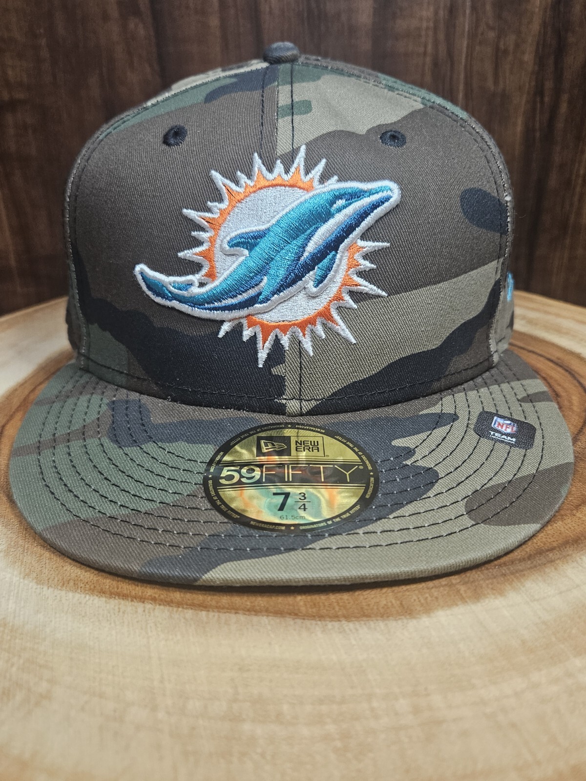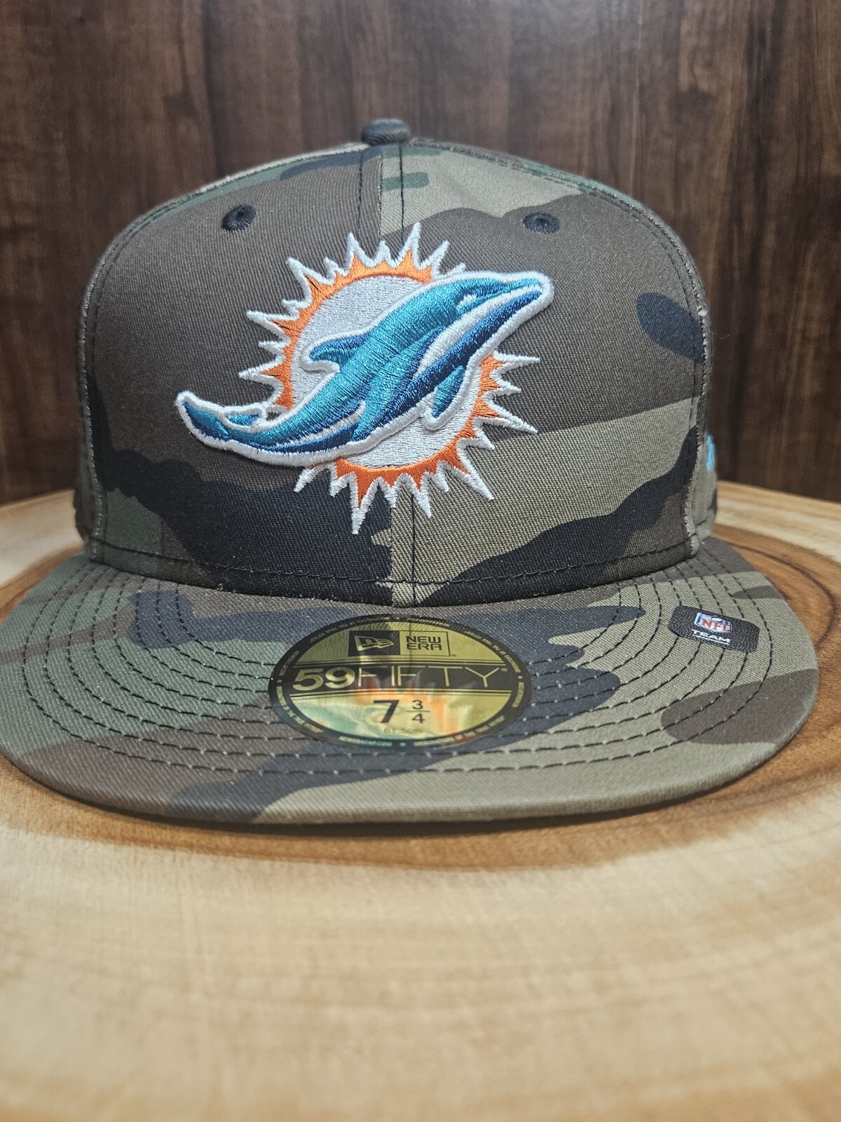 Show your team spirit with this Miami Dolphins Camo New Era 59Fifty Fitted Hat! This stylish baseball cap features a camouflage pattern and is sized at 7 3/4. Perfect for any occasion, whether it be a football game, casual outing, or even a party, this hat is a must-have accessory for any fan. Not only is this hat perfect for fans, but it also features great quality and design. Made by New Era, a trusted brand in the industry, this hat is fitted and comfortable to wear. The cap is also versatile and can be styled with streetwear, sports, or NFL football themes. Get your hands on this NFL football cap and head to the next game in style!