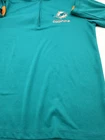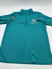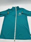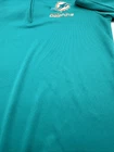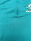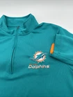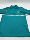 Men's Miami Dolphins team apparel sweater in size medium featuring a high neck design with embroidered details. The sweater is multi-color and officially licensed by the National Football League (NFL). Made in Swaziland, it is suitable for football fans looking to show support for the Miami Dolphins. *Check the images above for the flaws and measurements of the item.