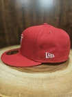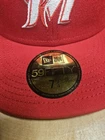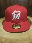 Elevate your game day ensemble with the Miami Marlins New Era 59Fifty Fitted Hat. This classic baseball cap, known for its crisp red hue and iconic team logo, is a staple for any dedicated Marlins fan. Sized at 7 3/4, it offers a comfortable fit that's perfect for stadium outings or everyday wear. Crafted with quality materials, this hat is designed to last while showcasing your team pride. The New Era brand ensures a blend of style and durability, making it an essential accessory in your wardrobe. Whether you're at the game or on the streets, this cap is an effortless way to support your favorite MLB team.