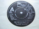 Artist: Michael Jackson Title: One Day In Your Life Format: 7" Label & Cat No: Tamla Motown TMG976 Grading: EX Year: 1975 Additional info: One Day In Your Life/Take Me Back *********************************************************************************** • thespacebar.records have been selling vinyl online for over 20 years. • We don't use stock photos. What you see is what you get. If we have multiple copies we'll send the best one. • If there are any issues when we come to pack up your record we will message to let you know and wait for you to confirm or cancel prior to shipping. • Much of our stock is in near-perfect condition. • Many items are unplayed but are graded conservatively as EX. • We're in the process of adding more photos to our listings. It's a big job. In the meantime if you'd like to see more images of any item, please send a message and we'll fast-track it. • We grade the vinyl 1st and the sleeve (if applicable) 2nd. • If there is only one grading and it seems very cheap, please check the item description carefully as we sell some records without sleeves and some sleeves without records. We always check with buyers before posting these items. • Singles that don't have a picture sleeve are supplied in an original company sleeve where possible. Otherwise they are sent in a plain white sleeve. • Records are supplied with a 400g polythene sleeve for protection. • To prevent seam splits, records are removed from their original sleeves for posting. • Everything is pressed in the UK unless otherwise stated in the item description. • More information/track listings/photographs available on request. Enjoy browsing our shop - Jeff & Catherine