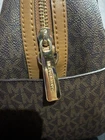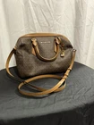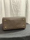 The Michael Kors Beige/Brown Leather Canvas Satchel Bag with detachable strap is a stylish and versatile accessory. The rectangular shape and double handles make it easy to carry, while the color combination adds a touch of sophistication. Made from a combination of canvas and leather, this medium-sized bag features inner pockets for organization and a zip closure for security. The iconic MK logo adds a touch of designer flair, making it a must-have for any fashion-forward person.