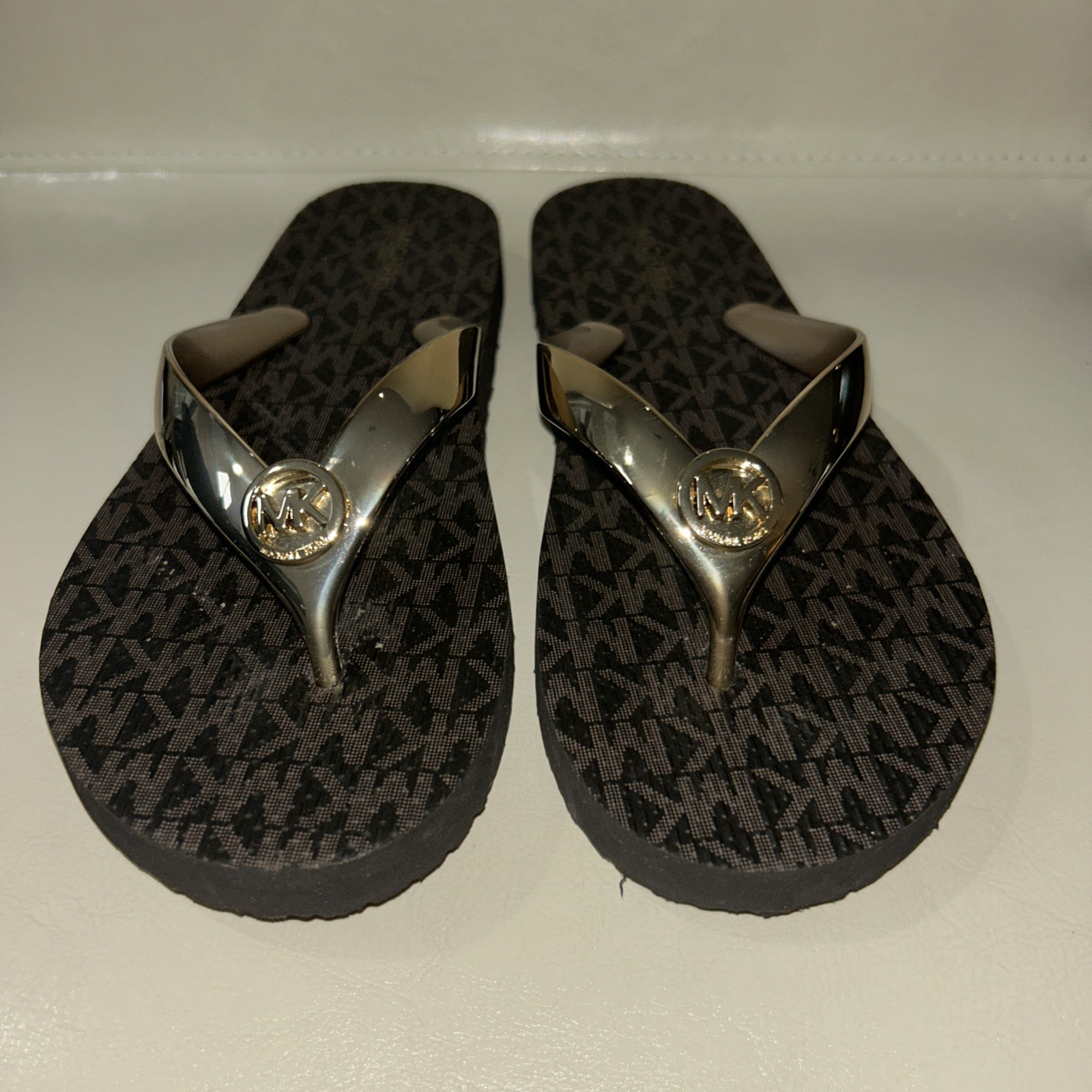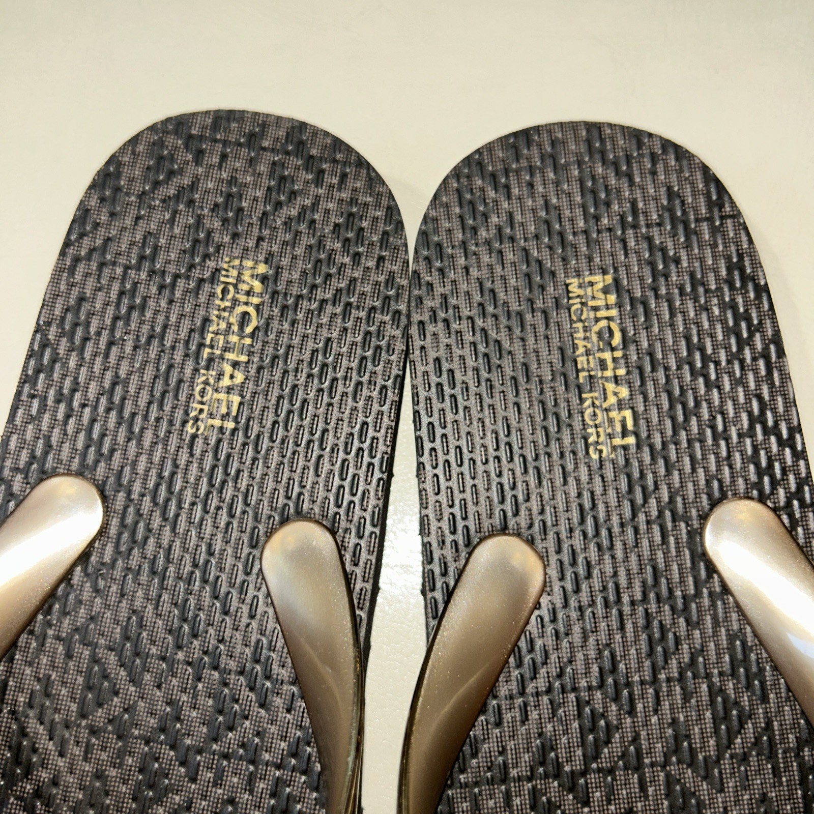 Michael Kors Eva sole gold and brown signature flip-flops. Size 7 They are new- they were used one time in the house, but they are new condition.