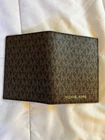 Excellent condition never used Michael Kors leather passport holder in brown. Length when open 8in Length closed 5in Width closed 4in