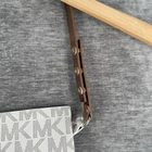Elevate your style with this Michael Kors MK Signature Vanilla Fanny Pack Belt Bag. The white synthetric leather exterior is accented with a gold-plated zipper and monogram logo. The bag has a zip-around closure and a belt strap made of matching synthetric leather. It measures 8 inches in width, 5 inches in height, and 1 inch in depth. This designer classic is perfect for travel or casual occasions. The bag comes with a wristlet accessory and features a beige synthetic leather lining with a gold-plated zipper closure. The Michael Kors MK Signature Vanilla Fanny Pack Belt Bag is a must-have for any fashion-forward woman who wants to add a touch of elegance to her wardrobe.