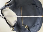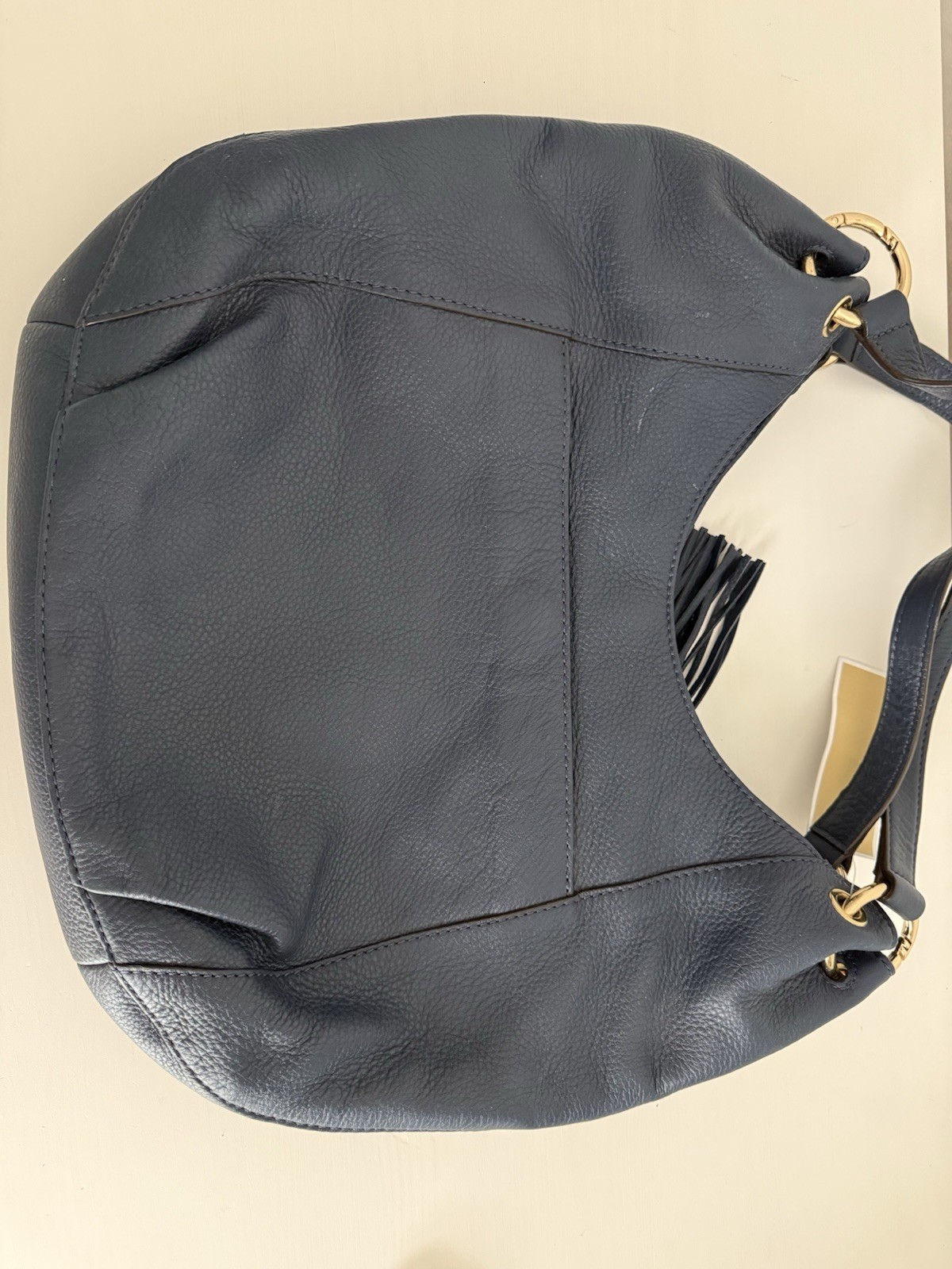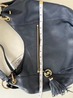 Elegant Michael Kors large shoulder tote in a deep navy blue color, crafted from genuine pebbled leather with gold-tone hardware. Features a stylish front zip pocket accented with the signature MK logo charm and leather tassel, adding a classic yet modern touch. Comfortable shoulder straps with chain and leather details make it perfect for everyday wear or work. Spacious interior easily fits daily essentials, documents, or a tablet. Timeless design that pairs beautifully with casual and business outfits. • Brand: Michael Kors • Model: Charm Tassel Large Chain Shoulder Tote • Color: Navy • Material: Genuine leather • Hardware: Gold tone • Closure: Top zip • Condition: excellent condition • MSRP: $368 A sophisticated and versatile designer bag with a refined silhouette and premium materials — ideal for elevating any wardrobe.