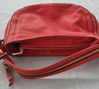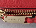 Authentic Michael Kors leather shoulder bag / crossbody in a vibrant red pebbled leather with gold-tone hardware. Features a spacious interior with zip pocket and slip pocket, plus adjustable/removable shoulder strap for versatile wear. Stylish, functional, and perfect for everyday use or travel. Details: Brand: Michael Kors Color: Red Material: Pebbled leather Hardware: Gold-tone Closure: Top zip Interior: Zip pocket + slip pocket Strap: Adjustable / removable crossbody strap Logo: Front gold Michael Kors logo Approximate Measurements (from photos): Width: ~12 inches Height: ~10 inches Depth: ~3 inches Strap drop: adjustable up to ~22 inches Condition: Very good pre-owned condition. Light natural creasing from normal use. No rips, tears, or heavy stains. Zippers work smoothly. See photos for full details. Smoke-free home. Ships securely.