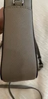 The Michael Kors Women's Gray Leather Adjustable Strap Crossbody Bag Purse is a stylish and versatile accessory for women on the go. Made of high-quality leather in a sleek gray color, this bag features a zip closure and an adjustable crossbody strap for added convenience. The silver hardware adds a touch of sophistication to the classic design, making it perfect for casual occasions where a touch of luxury is desired. The spacious interior in a coordinating gray lining ensures your essentials are both secure and organized while on the move.
