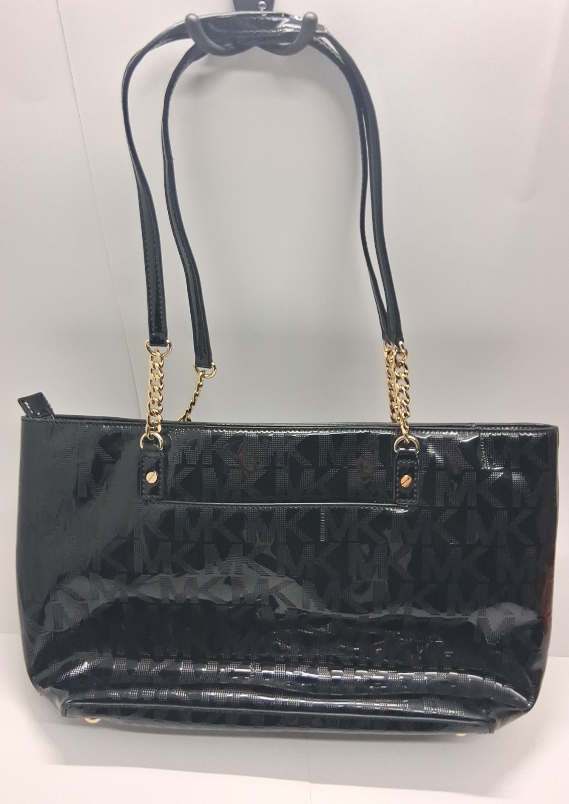 The Michael Kors Patent Leather Chain Tote Bag is a stylish and versatile accessory for women. The medium-sized bag features a multicolor exterior made of luxurious leather, with patent leather handles for added sophistication. The tote style design is practical and chic, making it ideal for everyday use or special occasions. With the iconic Michael Kors brand name, this bag exudes class and fashion-forward thinking. Fast Shipping!