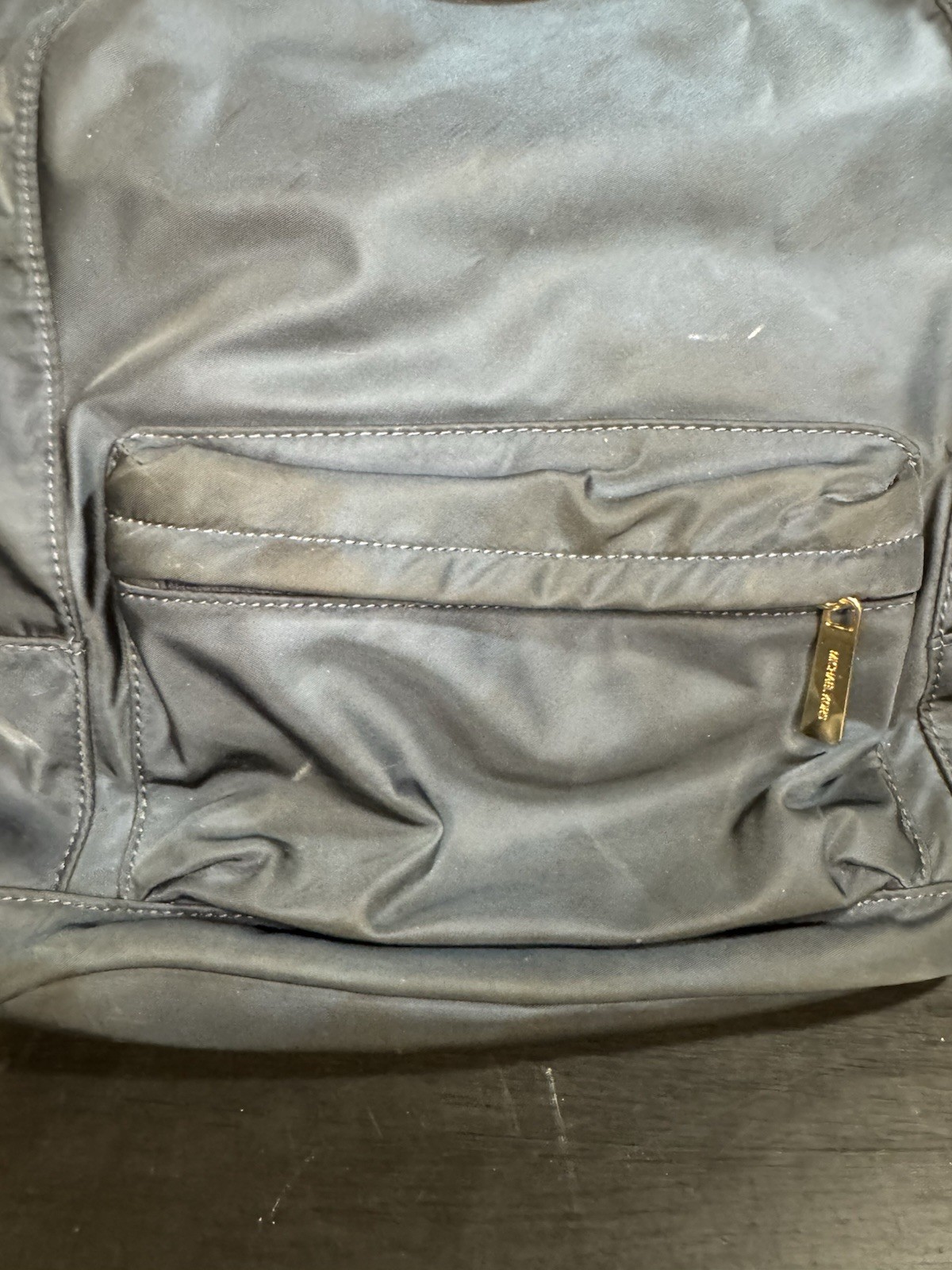 The Michael Kors Black Jet Set Backpack is a fashionable and practical accessory for women. Made with Saffiano leather trim, this medium-sized backpack features a zip closure, gold hardware accents, and an adjustable shoulder strap for easy carrying. The black exterior with a solid pattern and leather accents exudes a designer touch. With outer pockets for added convenience, this backpack from the Michael Kors Jet Set collection is a stylish choice for any outfit.