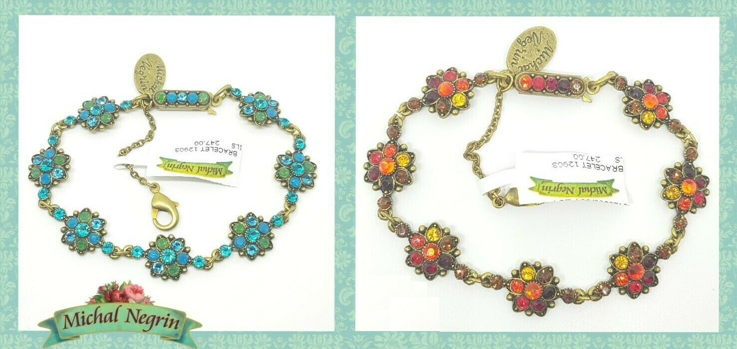 Bracelet Michal Negrin Crystals flowers Roses Elegant Made in Israel Size: 17.6 x 1.1 см = 7.0" x 0.4" In new condition. All items was purchased at Michal Negrin store. Attention! In the bracelet, color B dropped 1 crystal. That was closed down all %100 original. Please, see all photos. Item sell as is!!! Shipping world wide via registers air mail. Signed for mail. Please check out my other items!