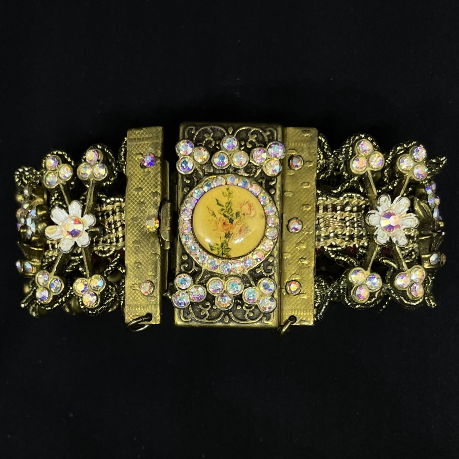 Bracelet Michal Negrin crystals flowers fabric Old collection Israel Size: 17.5 x 3.7 см = 7.0" x 1.5" Not used. All items was purchased at Michal Negrin store. That was closed down all %100 original. Please, see all photos. Item sell as is!!! Shipping world wide at flat rate of 20$, via registers air mail. Signed for mail. I do combine shipping. Please check out my other items!