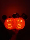 This contemporary jack-o-lantern pumpkin light features the beloved Disney characters, Mickey and Minnie Mouse, in a spooky Halloween theme. Made of durable blow mold plastic, this decoration is perfect for adding a touch of Disney magic to your holiday festivities. The pumpkin light is made in China and is an authentic Disneyana collectible. The item is a great addition to any Disney or Halloween decoration collection. The light is easy to use and creates a warm, cozy ambiance when lit. Celebrate the Halloween convention/event with this adorable Minnie Mouse character/story/theme pumpkin light.