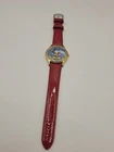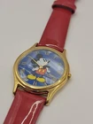 New Battery Works Lotus Rare Red leather band in mint condition This lotus rare girls wristwatch features Mickey Mouse in a red band design, perfect for any Disney fan. The watch is adorned with blue cloud pearls and is a must-have for collectors of Disneyana. The brand is Disney and the character/story/theme is Mickey Mouse, making it a unique addition to any collection. The watch is perfect for everyday wear or as a collector's item.