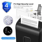 About this item 【P-4 High Security Level】Bonsaii Micro cut paper shredder with 6 sheets of shredding capacity (letter size, 20lb), destroys paper into tiny pieces measuring 5/32 x 15/32 inches (4 x 12mm), perfect to keep your confidential information safe 【Micro Cut Paper Shredder】Paper shredder for home office supports shredding paper, clips, staples, credit card (one at a time), meets your diverse home and small office needs 【Compact Sizes】The paper shredder for home use comes with portable handle design, 3. 4 gallons visible transparent window wastebasket, clean up the paper scraps handily 【Easy Operation & Safe Protection】Paper shredders for home is very easy to operate, AUTO start/stop and manual reverse makes shredding and paper jams clearing easy, and overheating and overloading thermal protection system can prolong its lifetime of the motor and the shredding machine Cut Type:Micro Cut Brand:bonsaii Capacity:3. 4 Gallons Recommended Uses For Product:Shredding Paper, Shredding Credit Cards, Shredding Staples, Shredding Paper Clips Color:Black