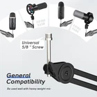 Microphone Arm Stand-BM63 LARGE CAPACITY-Made of sturdy metal, the scissor arm tube is wide and thick enough. Multi-reinforced designs make the weight capacity of arm stand up to 2 kg. The compact and strong boom arm gives your microphone secure hold to reduce violent shaking from intense gaming operation or bump and hit. FLEXIBLE ADJUSTMENT-Every joint on the arm stand provides a wide angle adjustment range. You can stretch it vertically for 180° or horizontally for 135°. Sufficient flexibility and extension allow you to adjust recording posture at will for a fitter angle to produces more touching and resonant audio. SPACE SAVING-The foldable mic boom arm is greatly convenient. It is handy and easy for you to put it aside the desktop corner after recording or other using. The suspension mic stand provides more desk using space and leaving more places for your snacks, PC setup or computer accessories placing. NOISE ABSORBING-The firm and sturdy boom arm protects your microphone away from shaking or falling off. It maintains a distance between your mic and desk, to better prevent the low frequency vibration noise entering into the mic, which make your sound clearer and smoother when podcasting or live streaming. WIDELY USE-With universal 5/8 '' screw, the stand is suitable for the most of mics on the market. It is simple to install and friendly to beginner or tech literate. Compatible with K658, K688, A8 and more, it can be used to carry a heavily sturdy microphone for better recording, gaming, live streaming, podcasts, vocals. TIPS: 1) The desk clamp is suitable for desktop with a thickness of 2’’or less. 2) The microphone is not included. 3) The package including, boom arm stand*1, desk clamp*1, velcro cable tie*3, user’s manual*1