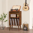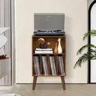 This stylish mid-century record player stand is a must-have for vinyl lovers! The solid wood construction feels sturdy and premium, easily holding up to 180 albums without wobbling. I love its versatile design—it doubles as a bookshelf or nightstand when not showcasing my turntable. The rich brown finish adds a warm, retro vibe to any room. Perfect blend of function and vintage charm!