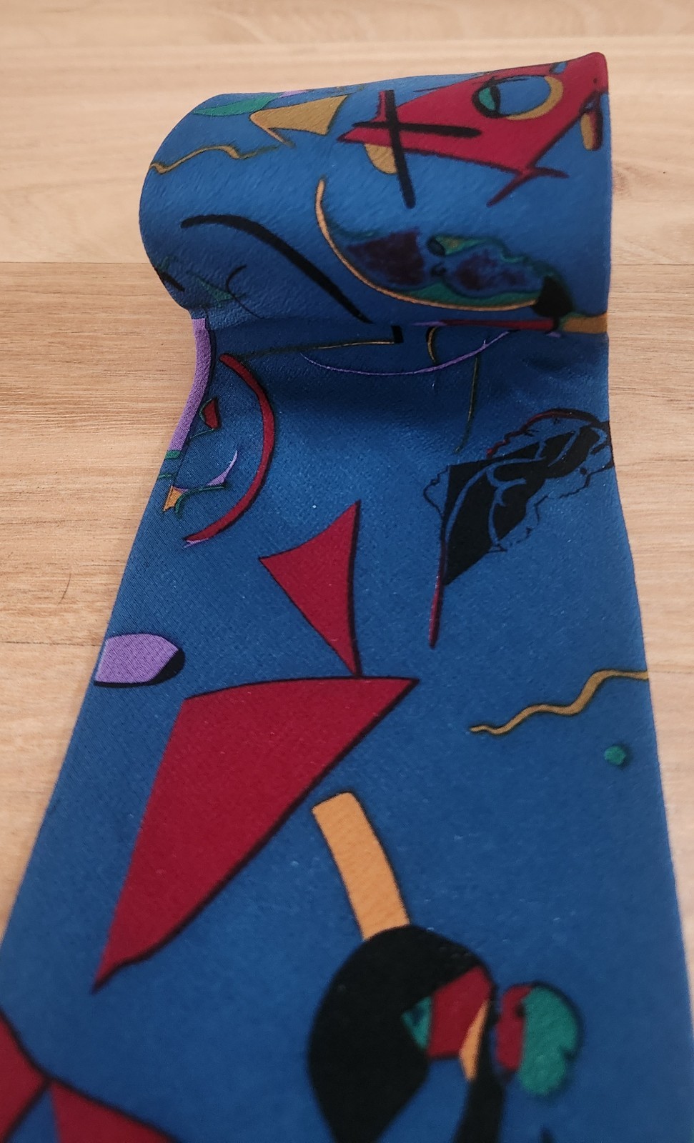 Miles Davis Abstract Print Tie Necktie. Blue w geometric jazzy shapes. SPOTLESS! No stains or discoloration No fading or fraying No holes or rips Ships rolled in a box, not an envelope