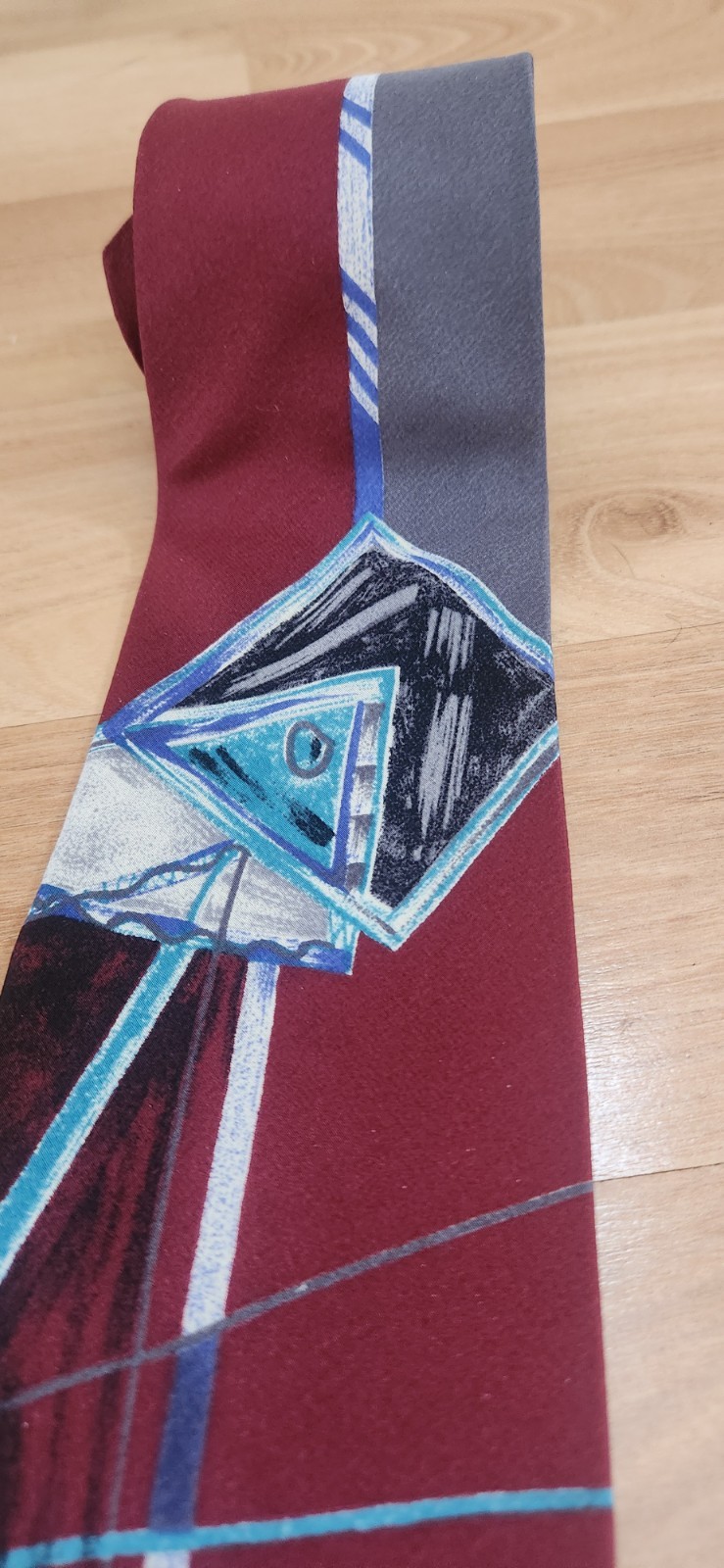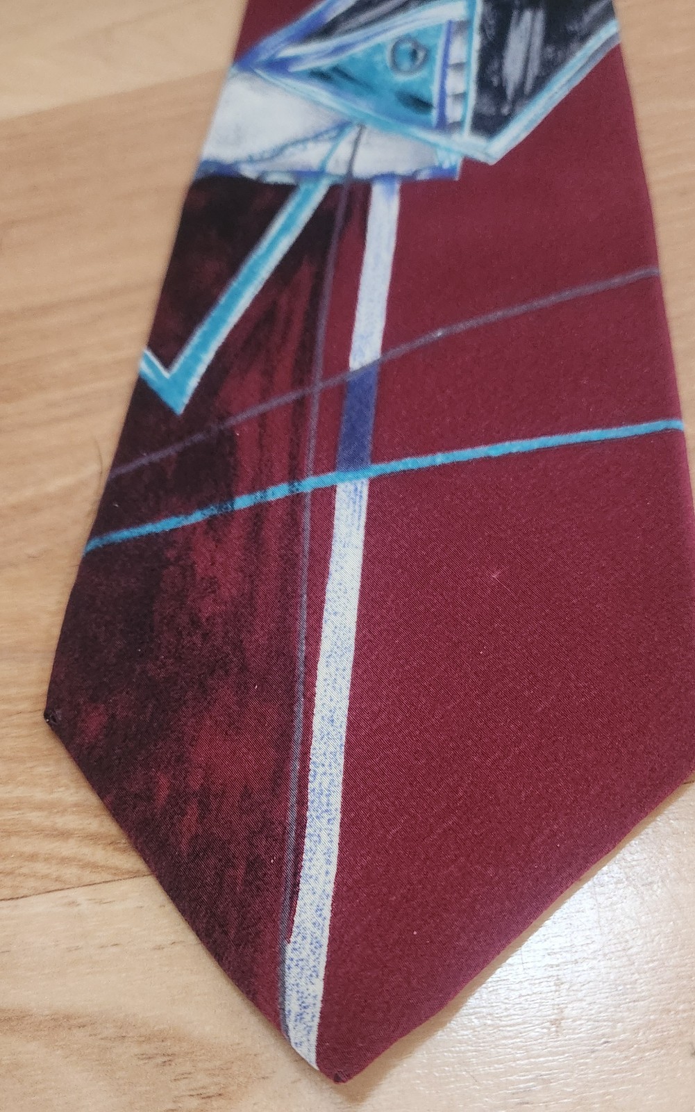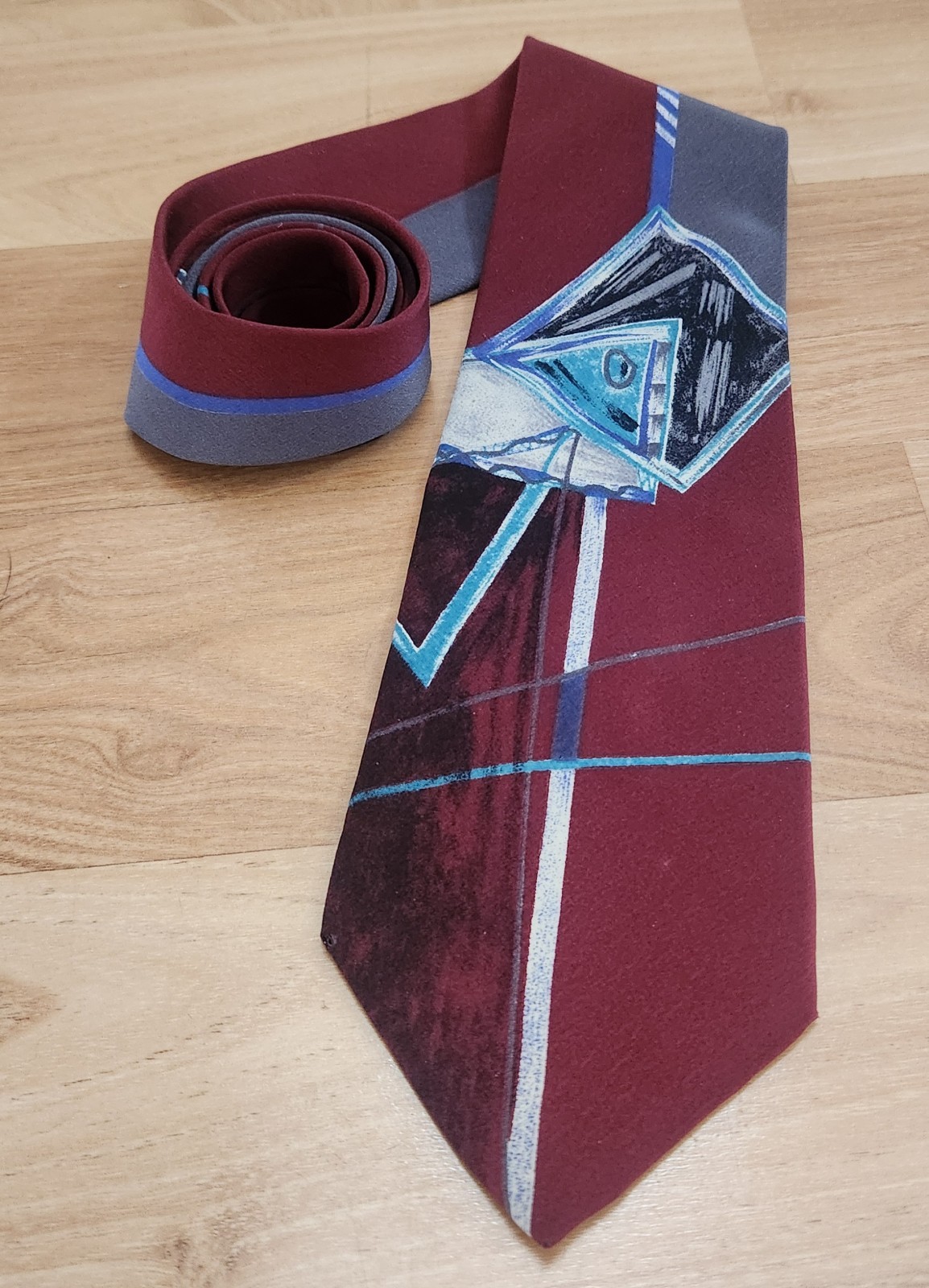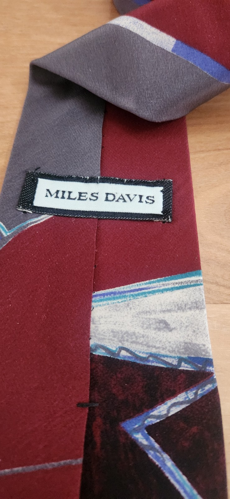 Miles Davis Abstract Print Tie Necktie. Burgundy and Grey with geometric shapes. SPOTLESS! No stains or discoloration No fading or fraying No holes or rips Ships rolled in a box, not an envelope