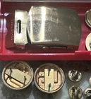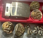 2 sets of brass lapel pins and belt buckle two extra us pins nose stamp