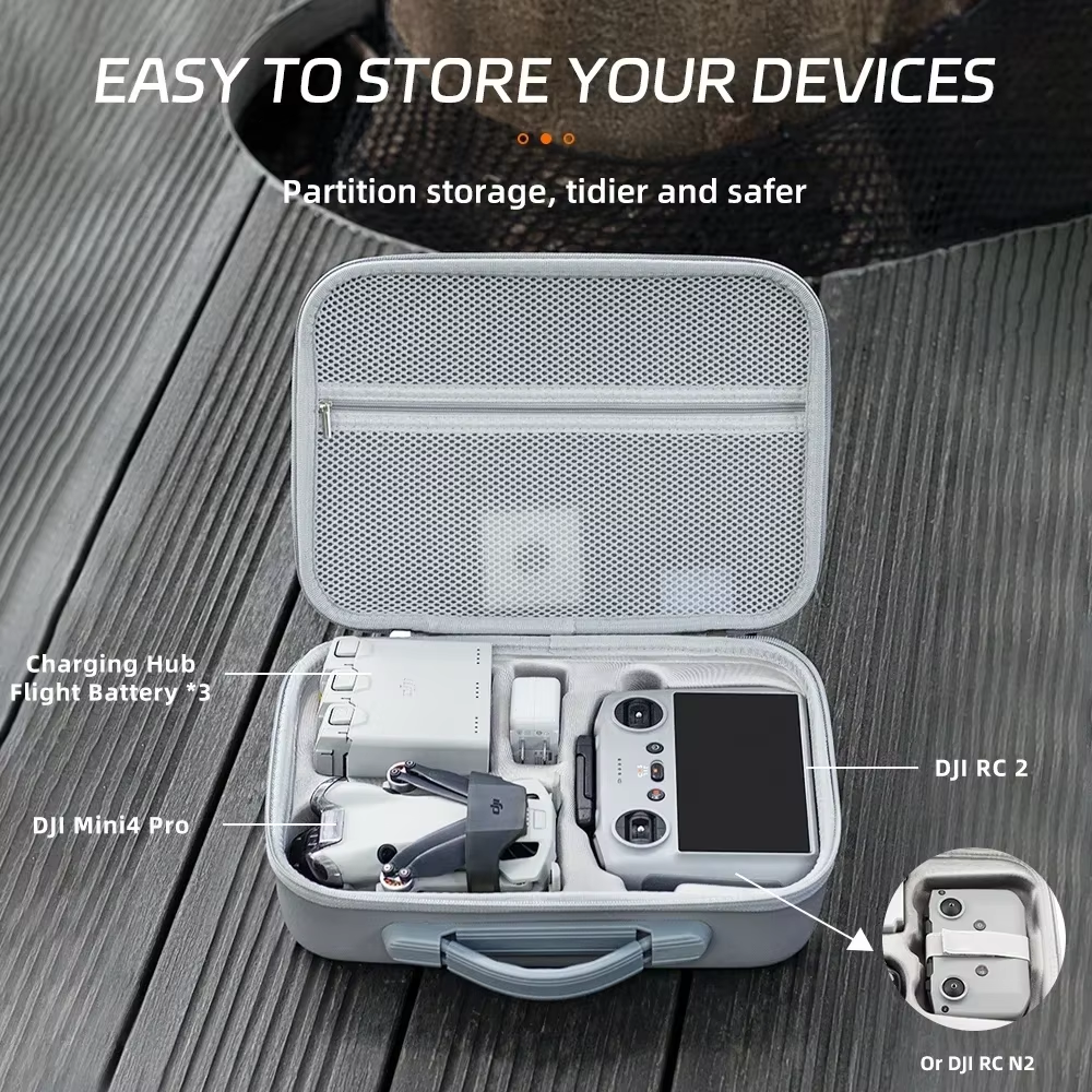 Store New Arrivals Add to Favorite View Feedback Contact Shoulder Bag for Mini 4 Pro Storage Case Drones Accessories Handbag Mini 4 Pro RC 2/RC-N2 Controler Hardshell Carrying Box Shoulder Bag for Mini 4 Pro Storage Case Drones Accessories Handbag Mini 4 Pro RC 2/RC-N2 Controler Hardshell Carrying Box Features: 1. Real machine 1:1 mold opening, small size, and large capacity, full storage. 2. Integrated molding, Double layer lycra lining is tailored for DJI Mini 4 Pro, simple fashion, compression, and wear resistance, more practical and convenient. 3. Shockproof, compression, waterproof and fall-proof, The case is pressure-resistant and waterproof Lined with shockproof decompression. comprehensive protection of your device. 4. Safety, environmentally friendly, and odorless Use environmentally friendly materials safe and odorless. 5. Portable travel in one package, Removable shoulder straps, Portable, cross-body portable, and travel easy. Description: Material: Lycra lining + PU Applicable models: DJI Mini 4 Pro( Applicable to DJI Mini 4 Pro RC 2/RC N2 Remote Controllers ) Color: Gray / Black weight: 630g size: 31-22-10cm/12.6-8.7-4.1inch Note: 1. The packing list does not include drones and other accessories. 2. Transition: 1cm=10mm=0.39inch. 3. Please allow a 1-3mm error due to manual measurement, please make sure you do not mind before ordering. Shopping List: 1× Carrying case 1× Shoulder strap ●Applicable to DJI Mini 4 Pro RC 2/RC N2 Remote Controllers ●No need to dismantle the joystick, Stored without dismantling the joystick ●Mesh pocket design, Breathable and beautiful, easy sorting and storage ●Two-way zipper, Smooth and not stuck after many strict tests ●Comfortable Handle, Strong bearing capacity, relieve hand stress ●Detachable shoulder strap, The length can be adjusted for comfortable carrying ●Applicable to DJI Mini 4 Pro RC 2/RC N2 Remote Controllers origin Mainland China hign-concerned chemical None drones accessories type Drone Bags size 31-22-10cm/12.6-8.7-4.1inch package Yes weight 630G model Mini 4 Pro RC 2/RC-N2 drone accessories Shoulder Bag/Suitcase/Storage bag/Carrying case mode of use Portable/Carry on shoulder type1 mini 4 pro bag type2 mini 4 pro case type3 mini4 pro bag type4 mini4 pro case type5 case handbag mini4 pro type6 case mini 4 pro type7 bag for mini4 type8 bag mini4 type9 case mini 4 pro type10 case mini4 pro type11 bag mini 4 pro type12 bag mini4 pro choice yes semi_choice yes Product Dimensions: 22.0 inches x 32.0 inches x 10.0 inches. Weight: 0.69 kg