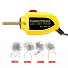 Features: 1.MULTIPURPOSE APPLICATION: Our 100W plastic welding machine is suitable for repairing and reinforcing automotive plastic parts, such as bumpers, dashboards, headlight brackets, plastic rings, and daily life plastic products. 2.EFFICIENT - EASY TO USE: This hot melt nail bumper repair kit heats up specially designed nails and inserts them into cracked plastic, creating a strong and durable elastic force in minutes. 3.ERGONOMIC DESIGN: This plastic bumper repair kit is comfortable to use and ergonomically designed to fit in the palm of your hand, great for repairing most modern plastic products.LED LIGHTING, easier to work in the dark. 4.Rapid heating: 3 seconds of rapid heating, disassembly without welding, the temperature can reach 500 ℃, the efficiency is greatly improved. 5. Durable, lightweight and portable: made of high quality ABS + stainless steel. This welding system plastic repair kit comes with 1 hot melt nail gun and 200 welding nails to meet various welding needs. Parameters: Plug: 220V EU/UK/AU Standard plug; 110V US Standard plug Voltage: AC110V/220V Output power: 100W Auxiliary function: LED lighting Maximum temperature: 500℃ Nail tube: pure copper material Heating speed: 2-3S Package Included: Welding machine*1 Nail*200