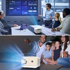 【Android System】 Built on Android system. It can run apps like Netflix , HBO Max , Hulu , Prime Video , Apple TV , Flixster , YoutubeTV , you can also download new apps from Android Market or Amazon Appstore. 【4K Resolution Supported】 Max resolution supported 4K , 150 ANSI lumens brightness, you can use it during the day and outdoors. 10000:1 contrast ratio, provides a clear picture and a high-quality color experience. 【2.4G/ 5G WiFi + Bluetooth Connection】 Wireless connection to your Android smartphone, iPhone, iPad devices. 【Keystone Correction + Image Scaling】 Adjust vertical and horizontal image easily. You can adjust the projected image from 100% to 75% without moving the projector. 【HDMI/ USB/ 3.5mm Earphone Ports】 Equipped with multiple ports, it can be easily connected to smartphones , tablets , MacBook, TV Stick , Firestick and PS4.