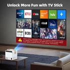【Android System】 Built on Android system. It can run apps like Netflix , HBO Max , Hulu , Prime Video , Apple TV , Flixster , YoutubeTV , you can also download new apps from Android Market or Amazon Appstore. 【4K Resolution Supported】 Max resolution supported 4K , 200 ANSI lumens brightness, you can use it during the day and outdoors. 10000:1 contrast ratio, provides a clear picture and a high-quality color experience. 【2.4G/ 5G WiFi + Bluetooth Connection】 Wireless connection to your Android smartphone, iPhone, iPad devices. 【Keystone Correction + Image Scaling】 Adjust vertical and horizontal image easily. You can adjust the projected image from 100% to 75% without moving the projector. 【HDMI/ USB/ 3.5mm Earphone Ports】 Equipped with multiple ports, it can be easily connected to smartphones , tablets , MacBook, TV Stick , Firestick and PS4. Specifications: Standard Resolution:1080x720p Projection Distance:0.8-5m Lamp:LED Projector Type:LCD Usage scenario:Business & Education, HOME THEATER, Outdoor Lens:Manual Focus Lens Bluetooth:5.0 Wi-Fi:YES Lamp Life (Hours):30,000h Operation System:Android 9 OSD Languages:28 Languages
