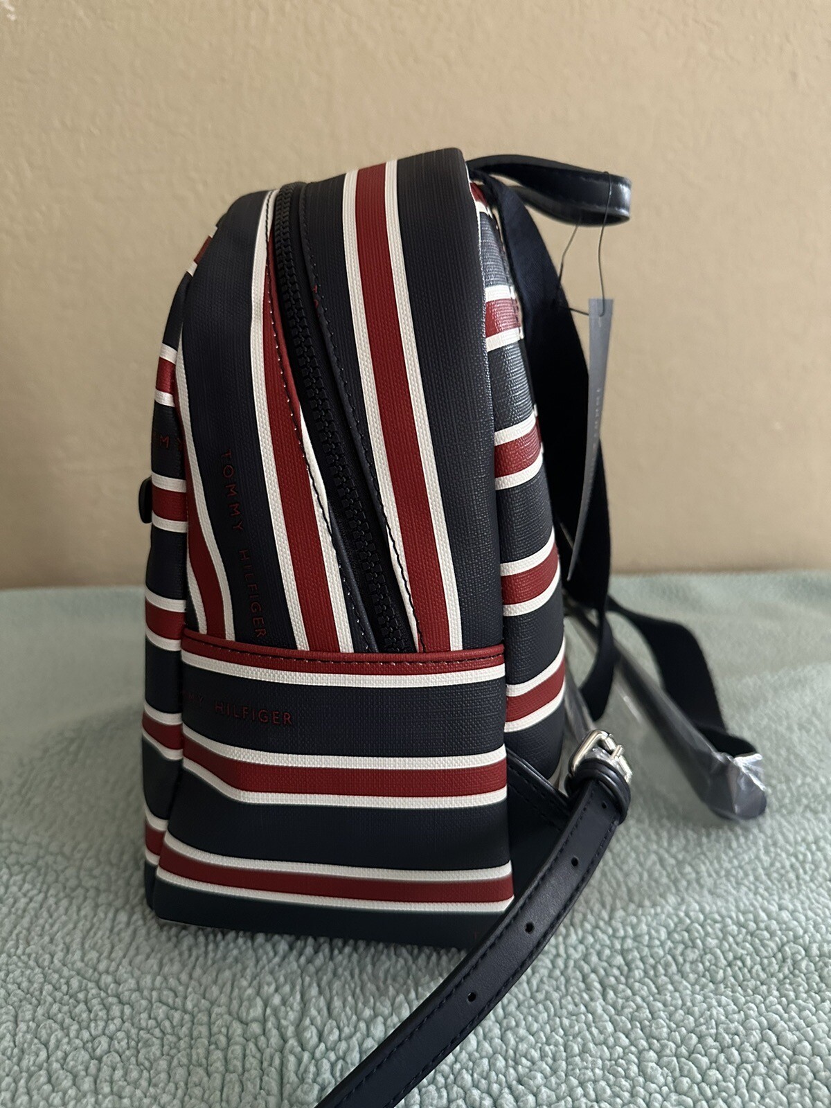 Tommy Hilfiger Blue and Red Stripes Mini Backpack. Condition is New with tags. Shipped with USPS Ground Advantage.