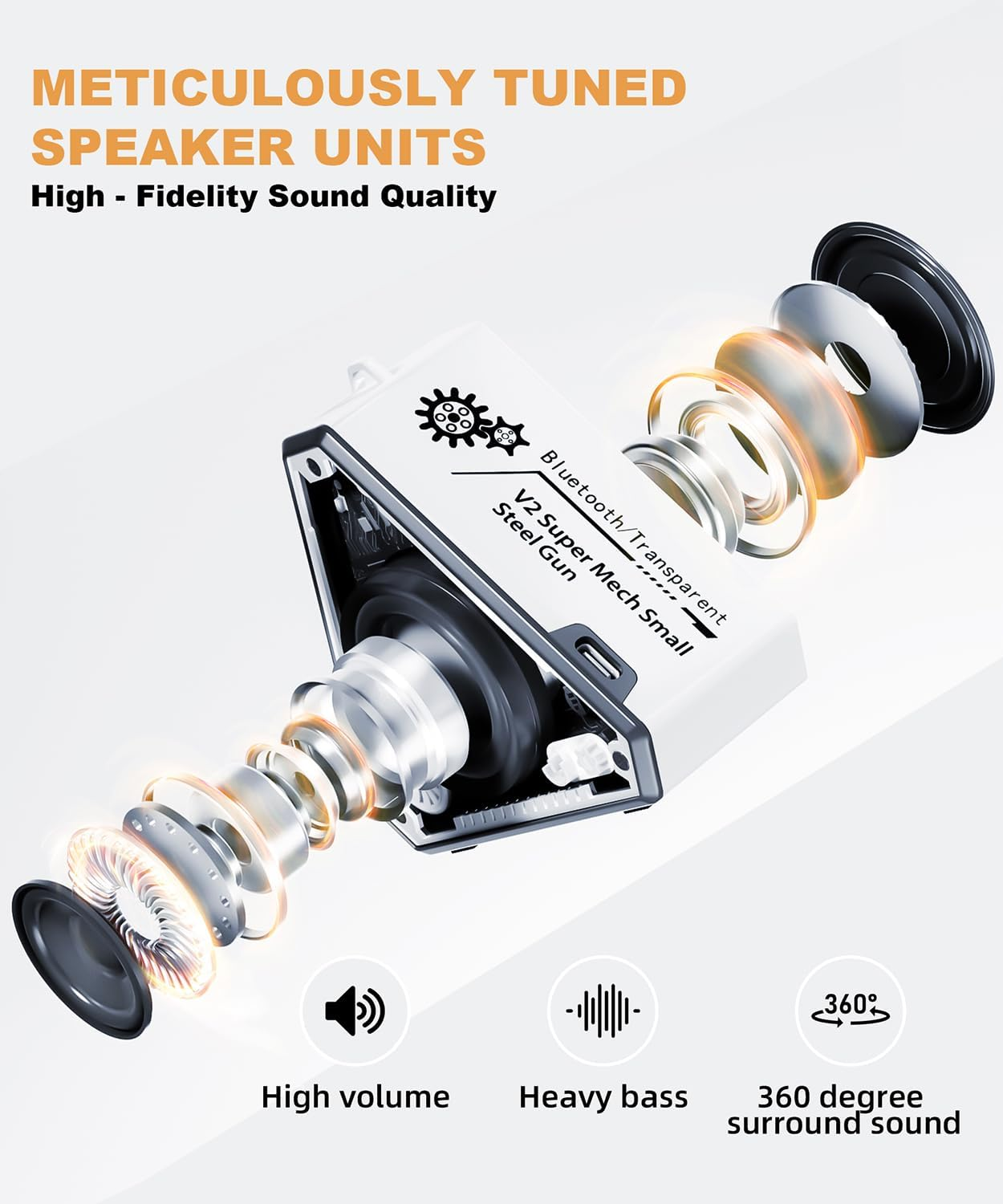 Compact Size, Big Sound: Experience powerful 360° surround sound with deep bass and HiFi quality, all in a compact, portable design. Mini and Portable: The feixg mini speaker is ultra-portable, featuring a built-in lanyard for easy carrying, making it perfect for travel and outdoor activities. Long Battery Life: Enjoy up to 5-7 hours of continuous playtime on a single charge, ensuring your music never stops during long trips or parties. TWS Pairing Technology: Connect two feixg speakers together for an even more immersive stereo experience, doubling the fun and sound. LED Light Show: Enhance your listening experience with dynamic LED lights that sync to the beat of your music, adding a cool and vibrant touch to any setting. Stylish and Tech-Savvy Design: With a transparent, futuristic design, this multifunctional Bluetooth speaker is not just a gadget but a fashion statement, perfect for teens and tech enthusiasts. Ideal Gift Choice: Whether for women, girls, boys, or kids, the feixg Bluetooth speaker is an ideal birthday gift, Christmas gift, or special present for any occasion, bringing the joy of music and technology to your loved ones. Product Description 1 Hi - Fi sound quality 2 Stereo heavy bass In the autumn mountain forest, melodies begin to rise This outdoor music companion, a mini portable Bluetooth speaker, is small and exquisite, like a lively note on your adventure. Camping on the mountain top and playing outdoor melodies This mini portable Bluetooth speaker plays the sounds of nature and your favorite tunes, adding fun to your camping trip and serving as your soulful outdoor companion. Green Brings a sense of nature and tranquility, like being in a fresh forest. White Simple and pure, perfect for any modern or minimalist bedroom. Orange Full of energy and enthusiasm, adding a touch of dynamism to your room. Cream - colored Warm and cozy, creating a relaxed and pleasant atmosphere. 1 Green 2 White 3 Orange 4 Cream - colored