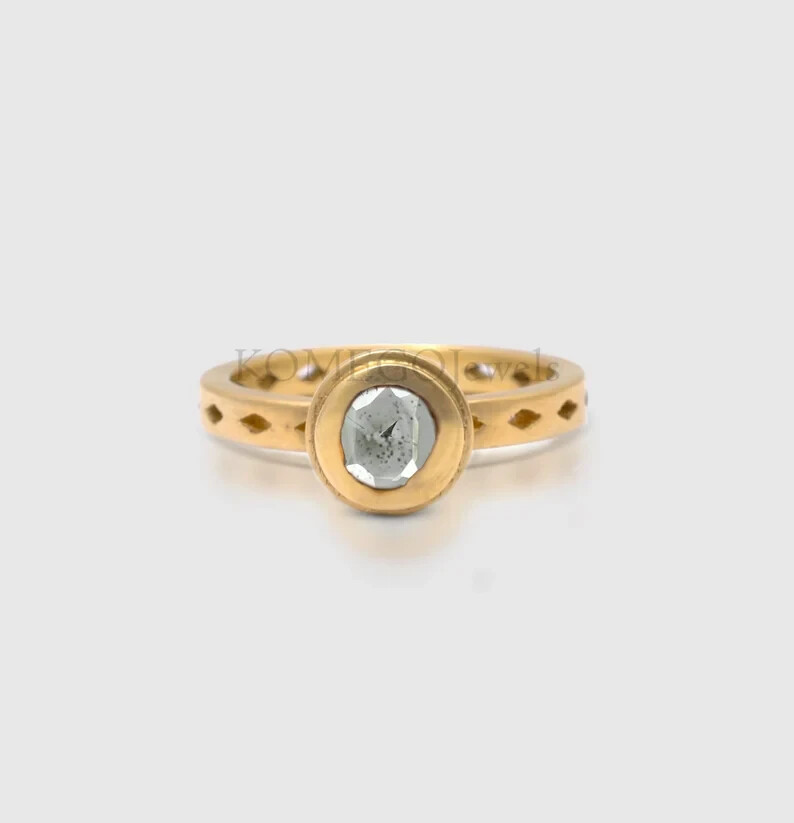 Minimalist Natural Diamond Slice Engagement Ring Gift For Women