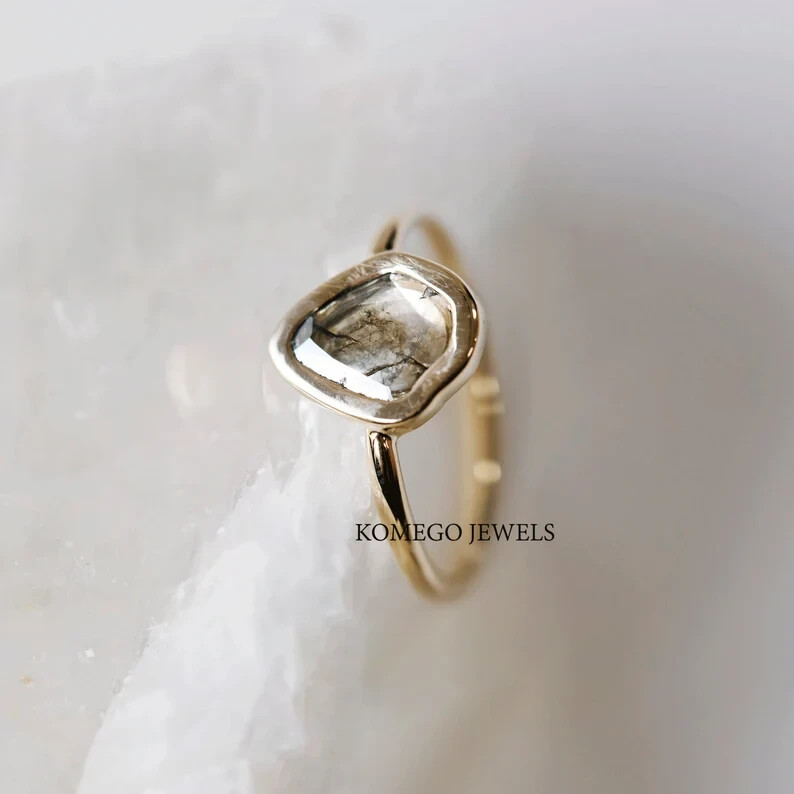 Minimalist Natural Diamond Slice Ring for Women Mother’s Day Gift