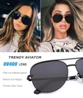 UV400 Protection Lenses block harmful UVA & UVB Rays, improve visual comfort by protecting the eye from Ultraviolet Radiation (wavelengths up to 400 nm) Durable alloy metal frame cleverly combine the fashion aviator with flat lens. Lightweight frame and Eco-friendly Silicone nose pads for added comfort Unisex trendy aviator Designs is Perfect For Any Mood. great for city and the beach alike. suitable for shopping, driving, travelling, or other outdoor activities Product Dimension: Lens Width 60mm(2.3inch); Lens Height 54mm(2.1inch); Temple Length 145mm(5.7inch) Aviators are made of durable metal frame, Silicone nose pads, ensure you a longer product life. Perfect for styling up workwear or weekend casuals.