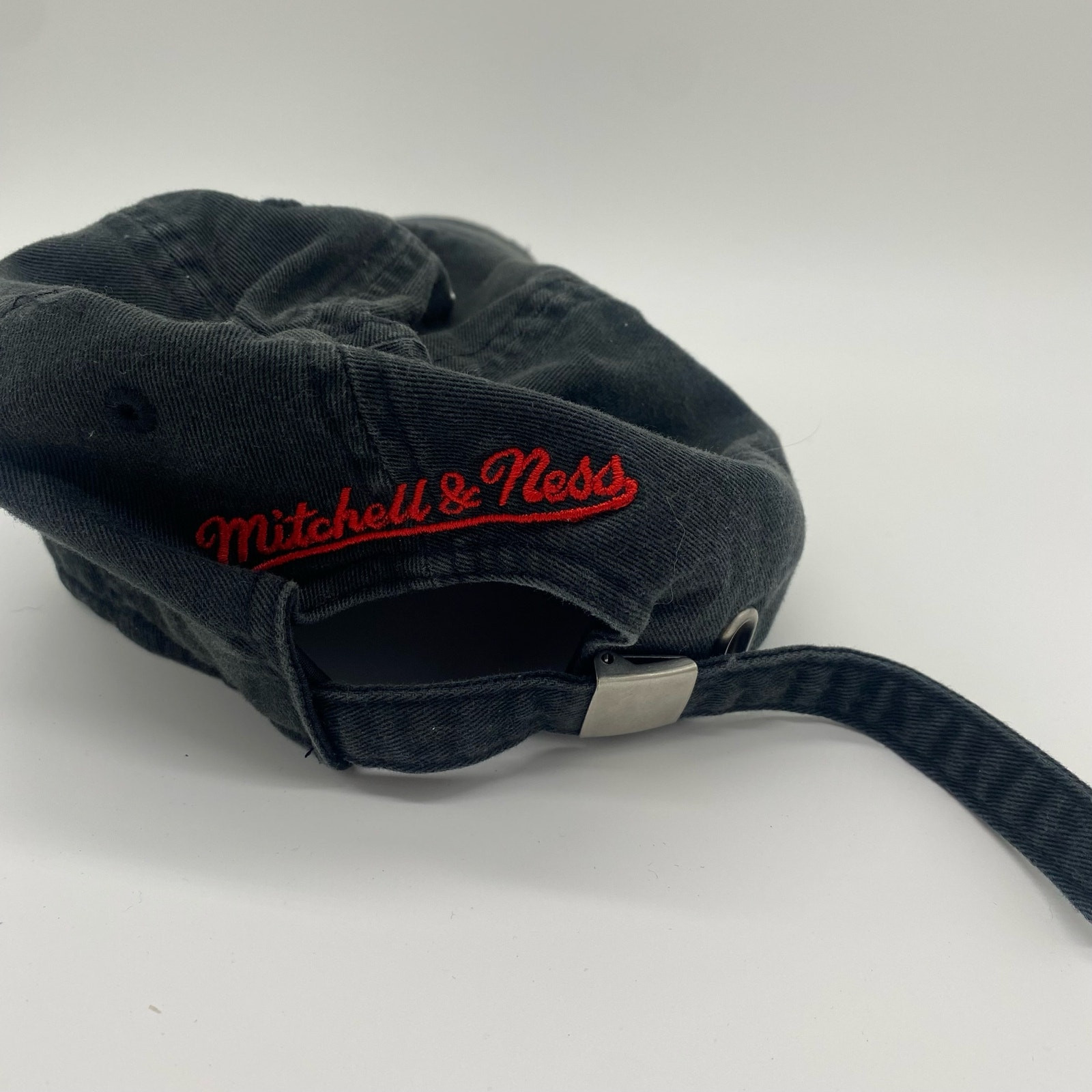 Mitchell & Ness Men's Black Chicago Bulls Chicago NBA Adjustable Cap Hat. Mitchell & Ness brand adjustable hat. Black colorway with the red and white Chicago Bulls logo at the front. Adjustable strap at the back. Fabric is 100% cotton. Wear on the bill as shown. In great pre-owned condition, see photos for more details. Always feel free to ask any questions you may have! Reasonable offers accepted.