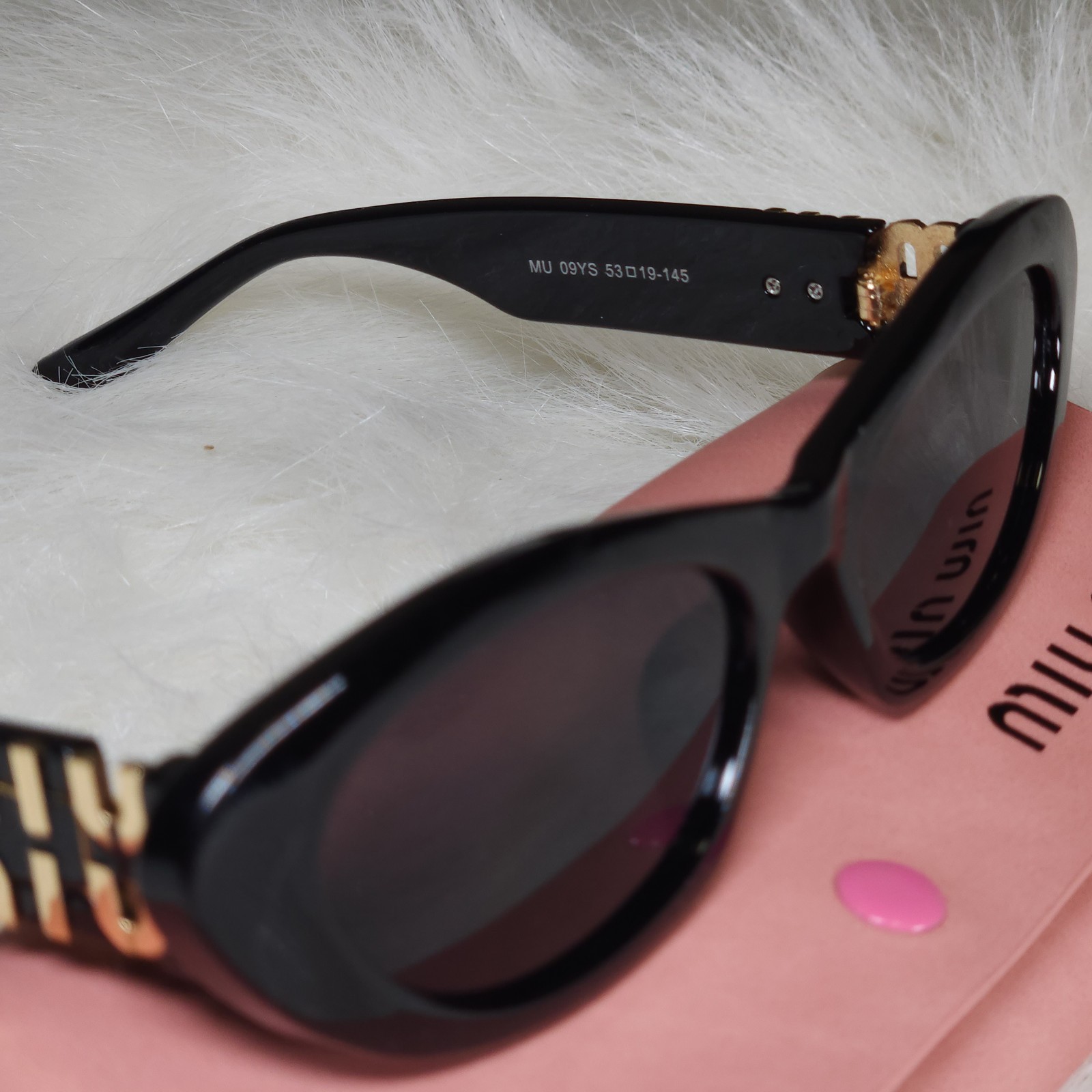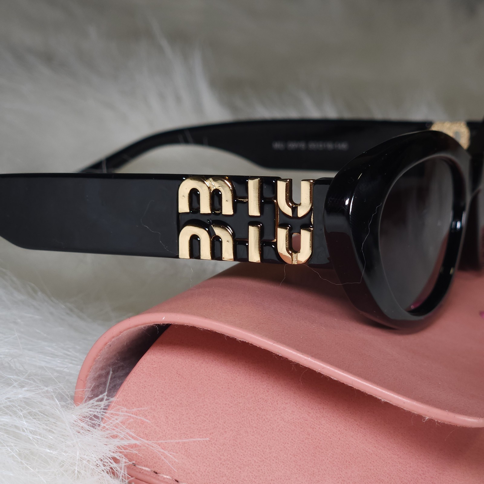 Stylish and authentic Miu Miu cat eye sunglasses – model SMU10W (1AB-9S1). These have a bold black frame with dark lenses and shiny gold “MIU MIU” logos on the sides. Super chic and perfect for everyday wear or dressing up your outfit. Details: Brand: Miu Miu Model: SMU10W 1AB-9S1 Color: Black frame, dark lenses Gold logo on arms Made in Italy Comes with original pink Miu Miu case and box (see pics) Condition: Excellent condition. Very light wear, no major scratches. Case is also in nice shape. Ships fast & packed with care! Feel free to message with any questions.