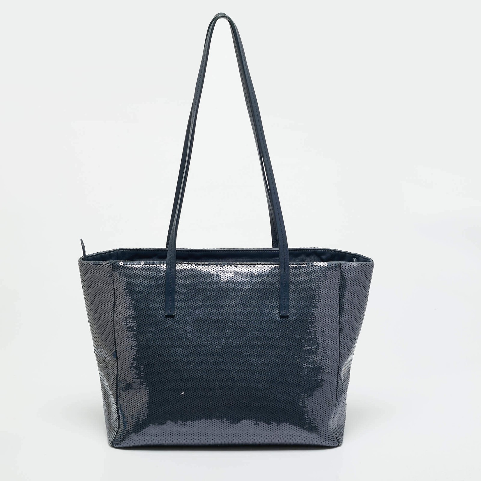 Our eBay Store About Us Contact Us Add to Favorite Sellers Miu Miu Logo Navy Blue Leather and Sequins Tote Structured, sophisticated, and stylish are some words that describe this Miu Miu tote! Crafted from leather in a red shade, the creation is adorned with the label's logo on the front, held by dual handles, and equipped with a well-spaced interior. Carry it to work or shopping sprees, you'll look chic! Product Details Brand Miu Miu Includes Authenticity Card Certified by The Luxury Closet This item has gone through a detailed authentication process overseen by our experts. We offer a lifetime guarantee of authenticity on all our items. How We Check The in-house team of experts at The Luxury Closet is highly trained to verify the authenticity and the condition of the luxury products. They ensure that only 100% authentic items are put on sale.The evaluation process is unique with its own mix of assessment criteria and differs according to the category. Each item is evaluated based on the following combination of hallmarks, hardware, stitching, symmetry, material, craftsmanship, stamping, codes, hologram stickers, and packaging. Our authenticators also check if the items have been modified or amended (e.g., aftermarket diamonds, replaced batteries, repaired bags, etc.) Please note that this handbag may have a perfume scent, as it was stored and packaged in Dubai where such fragrances are commonly used. International Buyers Import duties, taxes and charges are not included in the item price. These charges are the buyers responsibility. Please check with your country’s customs office to determine what these additional cost will be prior to buying.