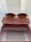 The Miu Miu MU08ZS Sunglasses in Transparent Sand Brown with Dark Brown Lenses are a stylish and high-quality accessory for women. Featuring a solid pattern with tinted polycarbonate lenses, these designer sunglasses offer UV protection with a UV400 rating. The frame is made of durable acetate in a brown color, while the temple length measures 140mm. Perfect for adding a touch of sophistication to any outfit, these Miu Miu sunglasses are a must-have for fashion-forward women looking to make a statement.